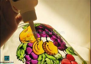 طرح مورد نظر را از داخل با چسب به شیشه میچسبانیم تا جابجا نشود.