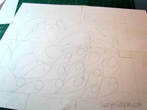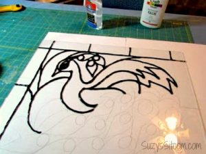 طرح طاووس رو روی كاغذ هم اندازه با شیشه رسم كنید