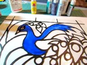 با استفاده از خمیر دورگیر مشكی محل خط های طاووس رو روی شیشه رسم كنید