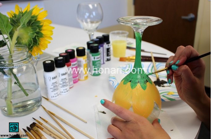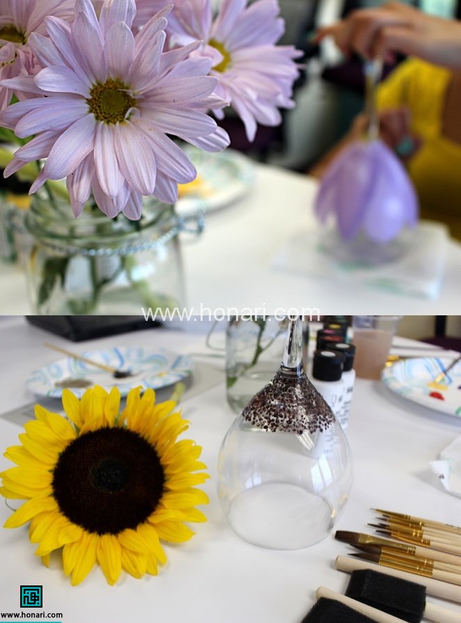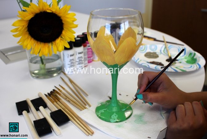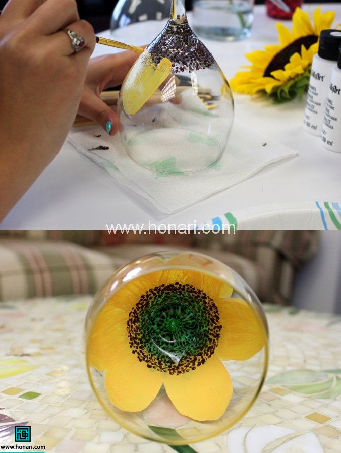 قبل شروع به این فکر کنید که چه گلی میخواید روی جامتون بکشید.من از یک گل آفتابگردان قشنگ و یک گل بنفش کمرنگ الهام گرفتم