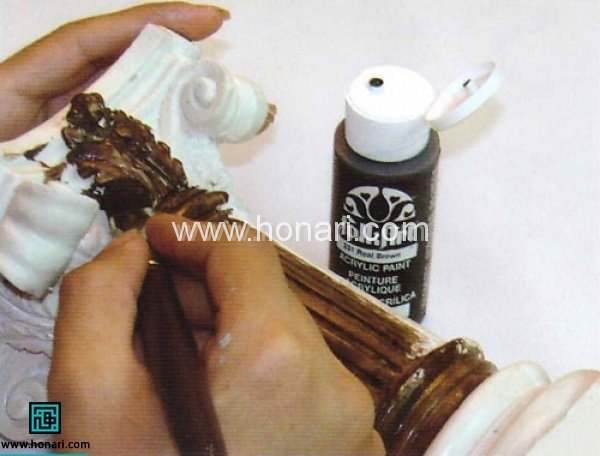 پودر کهنه کاری را روی تمام قسمت هایی که با رنگ قهوه ای رنگ شده می زنیم .