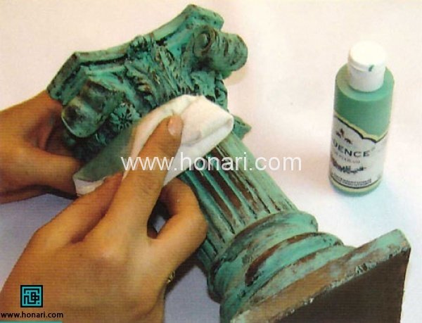 حلال اون آبه و برای تکنیک برنزه کردن کار بهترین رنگ هستش که میشه روی سطوح چوب، سرامیک، فلز و پای استر و .. غیره استفاده میشه.