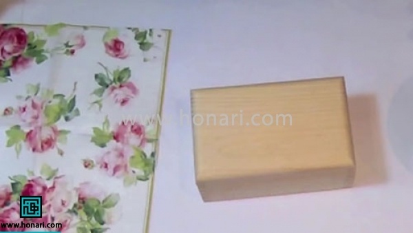 بعد از خشک شدن کامل جعبه ، گل های بریده شده را با محل مورد نظر روی جعبه تطبیق میدهیم.