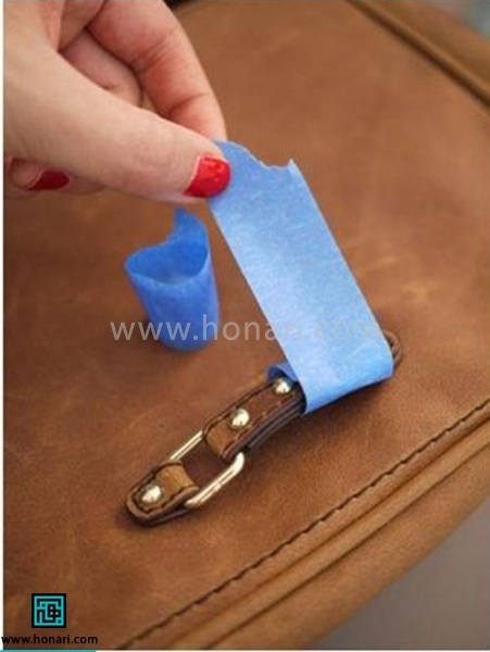 ابتدا بوسیله چسب کاغذی ، یراق ها و جاهایی که نمی خواهیم رنگی شود را پوشش میدهیم.