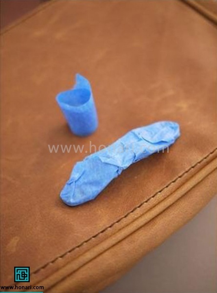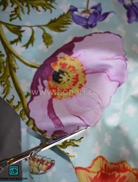 حال از دستمال کاغذی مورد نظر تکه هایی را که میخواهیم استفاده کنیم با قیچی برش میزنیم.