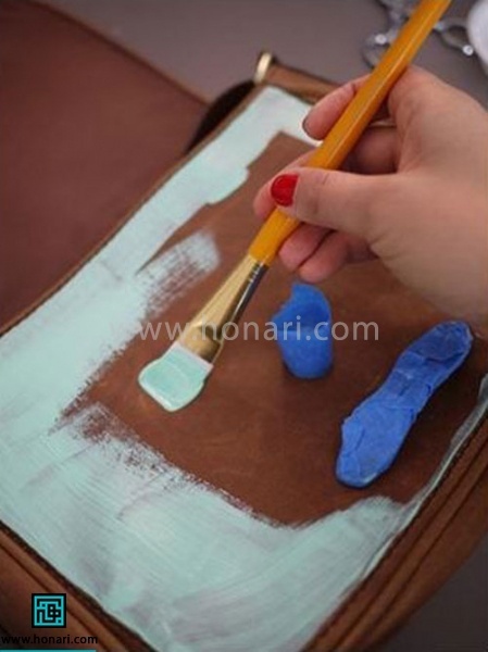 در صورتی که رنگ مخصوص چرم در اختیار نداشتید میتوانید از رنگ اکرولیک به همراه چسب DM5 استفاده کنید