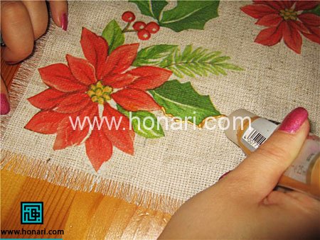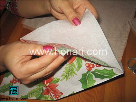 لایه پشت دستمال طرح دار مورد نیاز نیست. پس این لایه را جدا کنید.