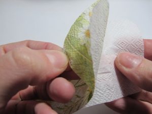 لایه زیرین دستمال کاغذی را جدا کنید. در این روش فقط قسمت گلدار مد نظر ما می باشد.
