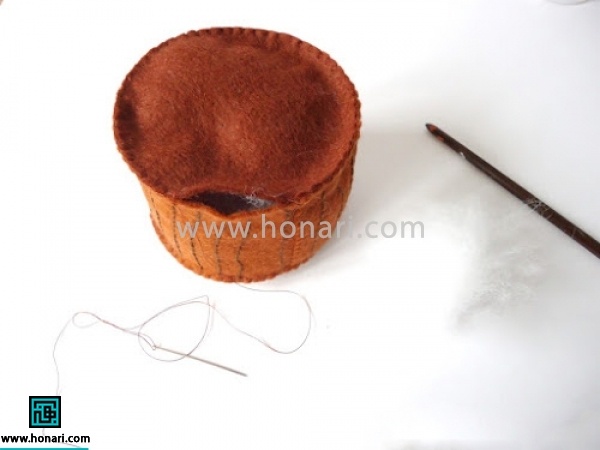 برای قسمت زیری تنه هم مشابه قسمت بالا، دایرهای برش زده و به تنه اصلی میدوزیم.