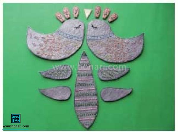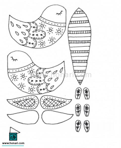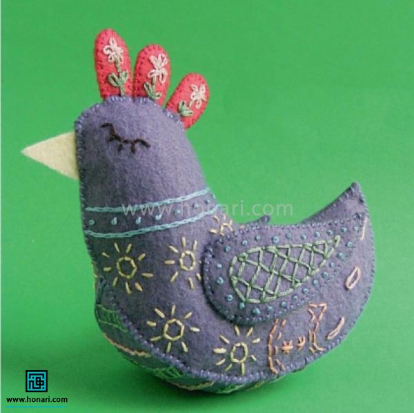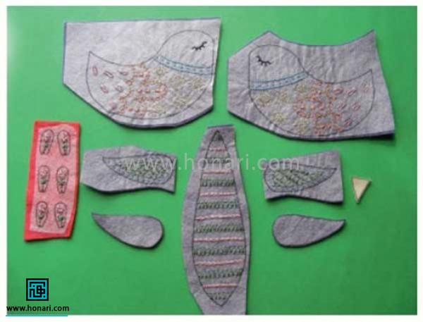 حالا با وجود طرح روی الگو، نمد بریده شده برای خروس را طراحی کنید. شروع به دو خت می کنیم . اول دوخت های تزئینی را بدوزید. می تونید از کلاس آموزشی گلدوزی با دست در سایت استفاده کنید![]()