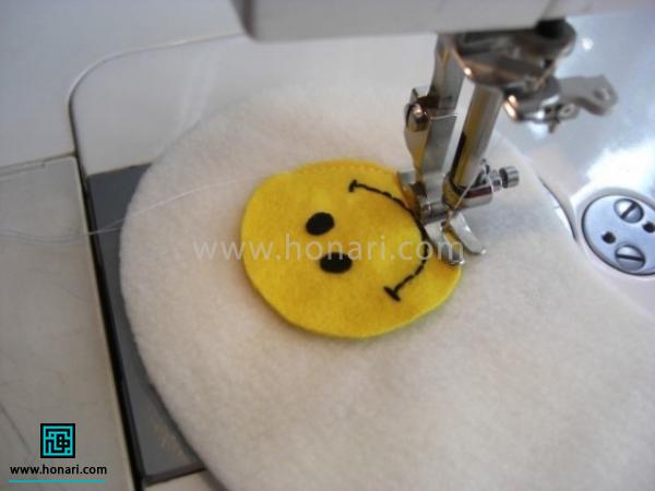 با نخ کوبلن مشکی و با استفاده از دوخت ساده لبخند را در جای خود روی صورت میدوزیم .