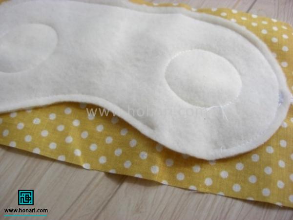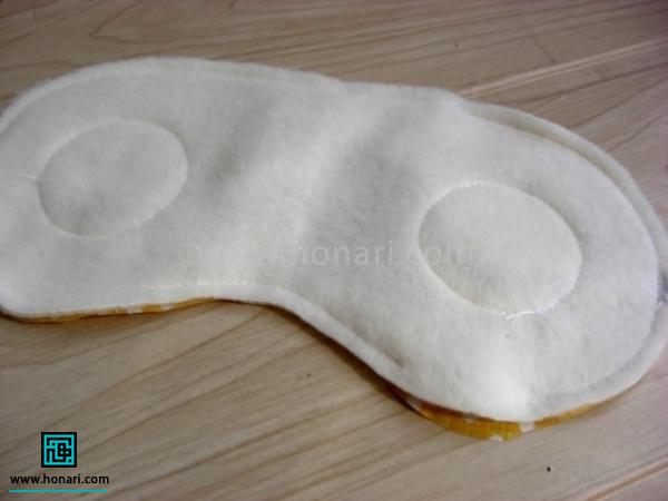وقتی که پارچه ها را به رو بر میگردانیم قسمتی که باز گذاشتیم را میدوزیم . در نهایت چشم بند مانند تصویر میشود .