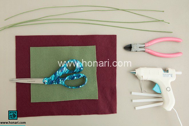 وسایل مورد نیاز برای آموزش نمد دوزی گل ها: