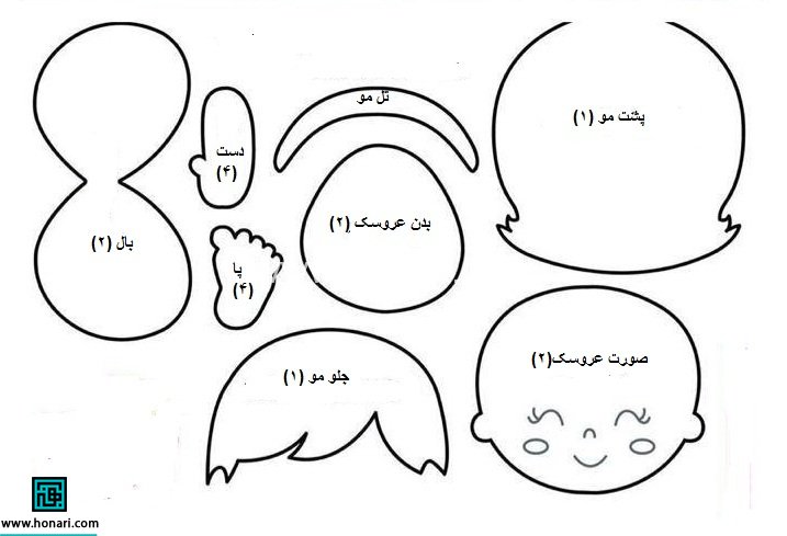 اگر دوست دارید این عروسک زیبا را در سایز بزرگ درست کنید، باید الگوها را با سایز بزرگ پرینت بگیرید.
