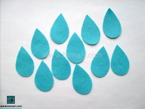 با استفاده از الگوی ابر دو ابر خاکستری و تعداد زیادی قطره باران آبی بر روی نمد برش میزنیم