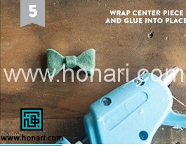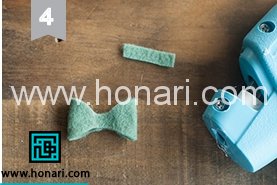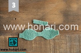 دو طرف این قطعه نمدی را به وسط تا کنید تا شکل پاپیون دیده شود و با چسب حرارتی بچسبونید .
