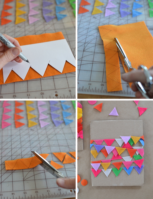 خب برای ساختن نوار نمدی مثلثی رو کاغذ مثلث ها رو با اندازه ی دلخواهمون میکشیم .