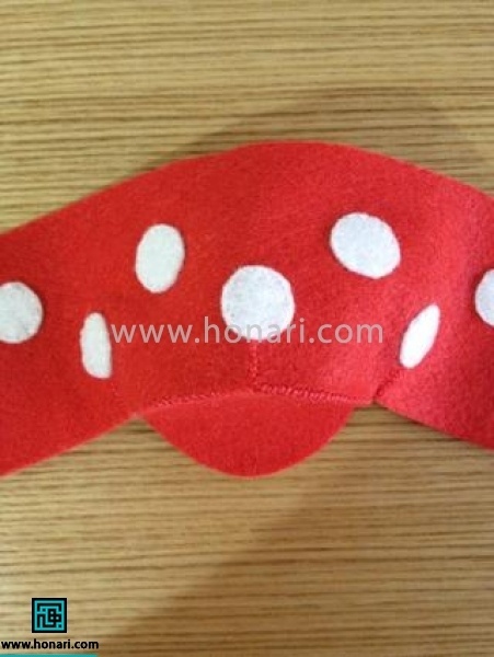 با کمک چسب حرارتی، تیکه‌های چشم و دهن کاکتوس نمدی رو سر جای خودشون ثابت می‌کنیم و با چندتا دوخت ریز یا با استفاده از ماژیک مشکی، دندون‌ها و چشم‌های اونو مشخص می‌کنیم.