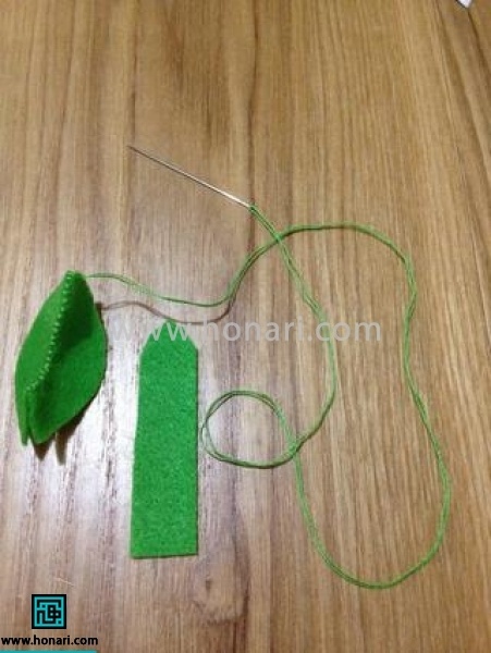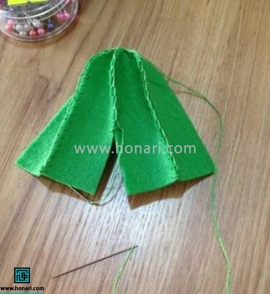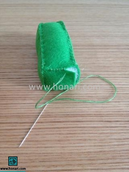 تیکه‌های اصلی تنه کاکتوس نمدی رو با دوخت دندون‌موشی، تمیز و یک‌دست و با حوصله به هم وصل می‌کنیم.