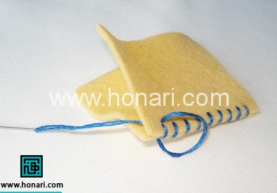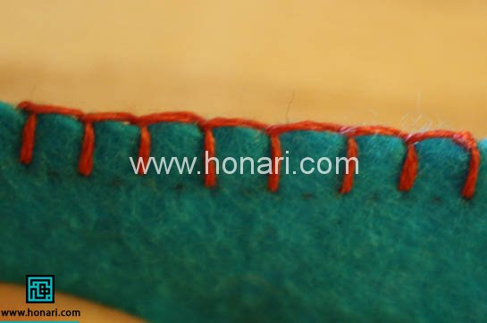 برای یاد گرفتن دوخت دندان موشی و هم دوخت کج (شلاقی) می توانید به قسمت آموزش نمد دوزی سایت هنری نیز بروید.