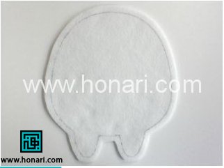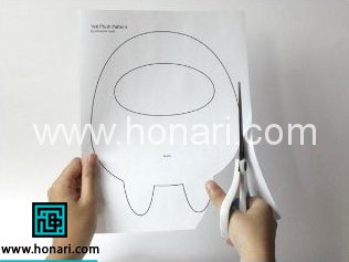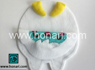 حالا شما دو قطعه ی مشابه از بدن را دارید ، یکی از ان ها را بردارید و الگو بدن را بار دیگر روی آن بذارید و دور صورت را روی نمد مشخص کنید .
