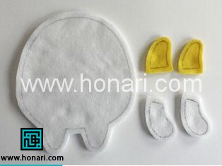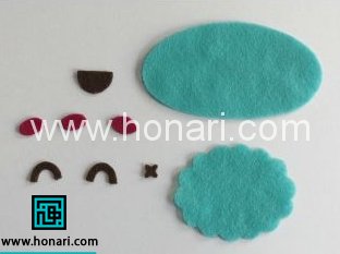 ابتدا طرح قطعات رو مانند زیر رو روی كاغذ الگو بكشید . بعد از ان الگو رو روی نمد بگذارید و برش بزنید .