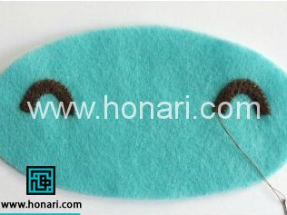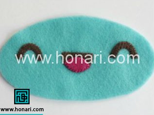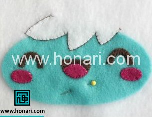بعد از تهیه ی قطعات مورد نیاز،شروع می كنیم به دوخت صورت عروسك.ابتدا چشم های عروسك رو روی صورت اون به شکل هلال می دوزیم .