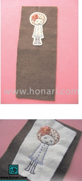 طرح مورد نظرتون رو با کمک مداد خیاطی صابونی روی نمد به رنگ دیگه منتقل کنید و دور تا دور اون رو با نخ‌های رنگی دوخت بزنید. بعد اضافه‌های پارچه رو ببرید و اونو روی بدنه کارتون بچسبونید.