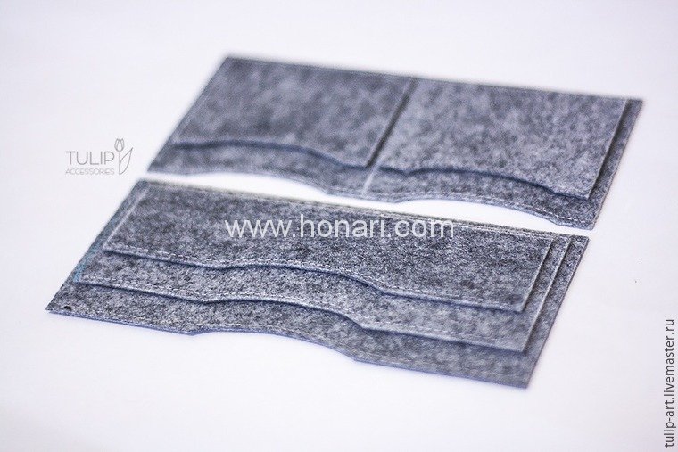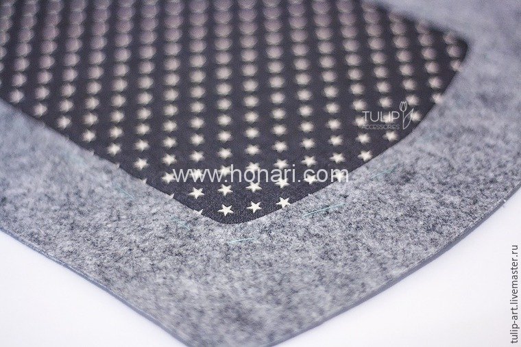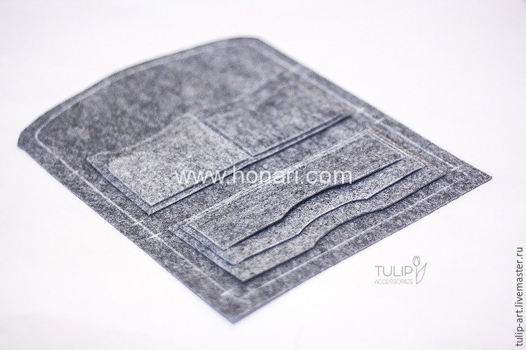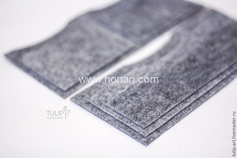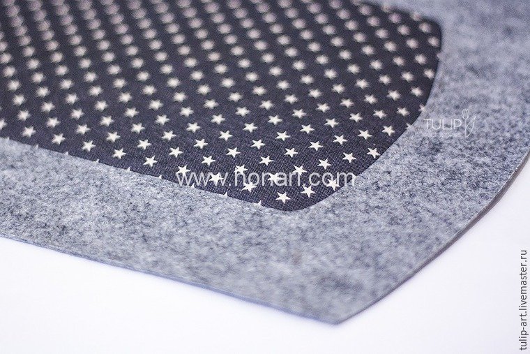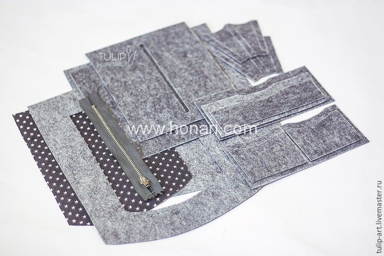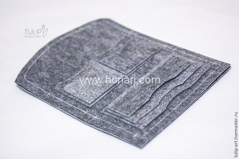 یک الگوی دیگر از الگوی شماره 3 با نمد 5 میل طوسی برش می زنیم. و قطعات مختلف را مانند تصویر روی آن قرار می دهیم.