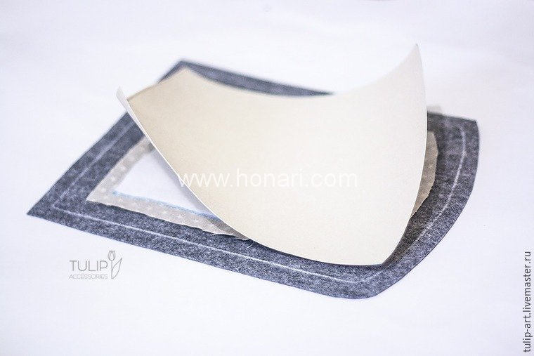 دور تا دور کار را طبق الگوی شماره 3 از نمد ساده طوسی برش می زنیم و می چسبانیم.