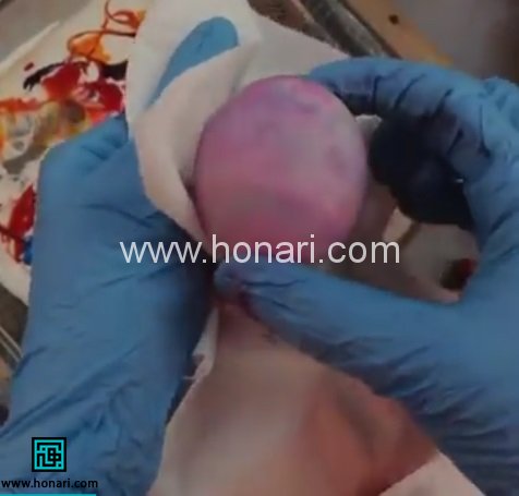 سپس جوراب را بریده و تخم مرغ ها را بیرون می آوریم.