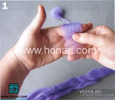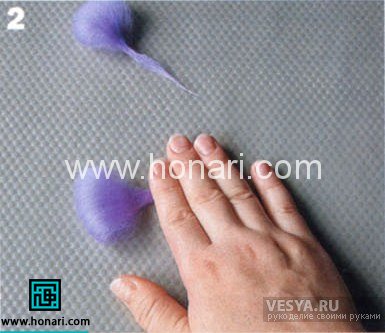 از الیاف كچه ی بنفش مقداری جدا كنید با پیچیدن به انگشتتون اون رو خم كنید.