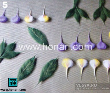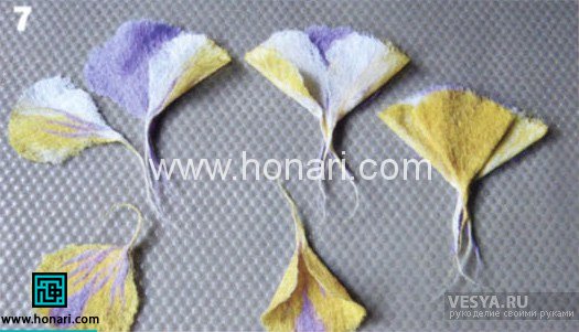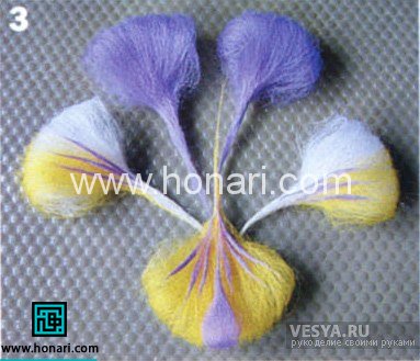 به همین روش و با استفاده از الیاف سفید و زرد،گلبرگ هایی مطابق شكل زیر بسازید