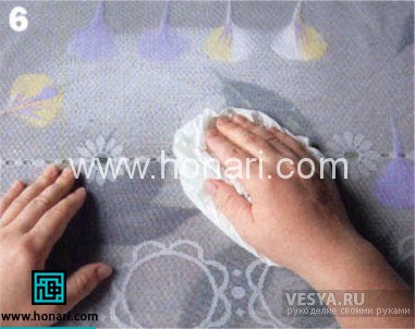 قطعات آماده شده رو بین دو لایه پارچه ی نازك بگذارید و روی اون دستمالی آغشته به آب و كف بكشید تا فشرده بشن(پارچه ها نباید ضد آب باشن تا آب به راحتی ازشون عبور كنه و به الیاف برسه)