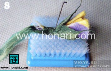 گلبرگ ها رو كار هم روی فرچه بگذارید و با سوزن زدن اون ها رو به هم متصل كنید.