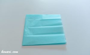 مرحله اول این است که مربع کاغذی خود را همانند باد بزن تا کنید. در مرحله بعد این مربع را مطابق شکل بالا از وسط تا کرده و به صورت مساوی روی هم قرار دهید.