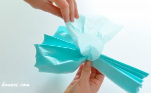 دنباله ها را به وسیله چسب به پشت گل فانتزی بچسبانید.