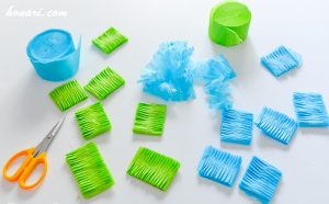 برای درست کردن دنباله باز هم از کاغذ کشی باید استفاده کنید. هر چقدر که دوست دارید دنباله این عروس دریایی بلند تر باشد اندازه را بلند کنید.
