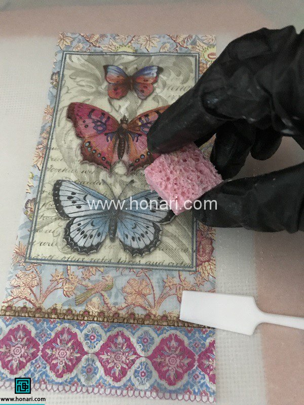 در این شرایط بخش چاپ شده دستمال کاغذی به سمت بالا خواهد بود. کمی رزین به آن بیفزایید .