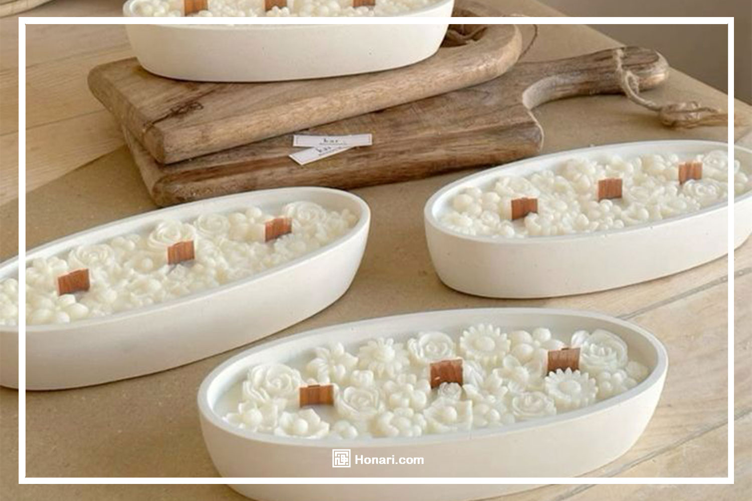 انتخاب ظرف: ظرف شمع باید مقاوم به حرارت باشد. ظروف شیشهای ضخیم یا سرامیکی بهترین گزینه هستند.