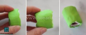 5. بعد مثل مرحله قبل خمیر سبز رو به دور استوانه سفید میپیچیم