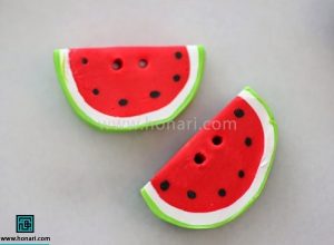 دوستای هنرمندم سلام. امروز میخوایم دکمه های هندونه ای رو با خمیر فیمو بهتون آموزش بدیم. برای طرحی كه ما امروز قراره با هم بسازیم نیاز به مهارت خاصی ندارید و خیلی سریع میتونید دکمه هایی زیبا درست کنید.