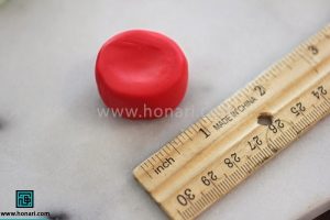1. اول با خمیر قرمز ، دایره ای به قطر 2.5 سانتی متر درست میکنیم.