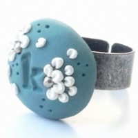 حالا دو تا مهره نقره ای در دو طرف حرف روی خمیر نصب می کنیم. با خمیر سفید گلوله های ریزی درست کرده و دور مهره نقره ای می چینیم.