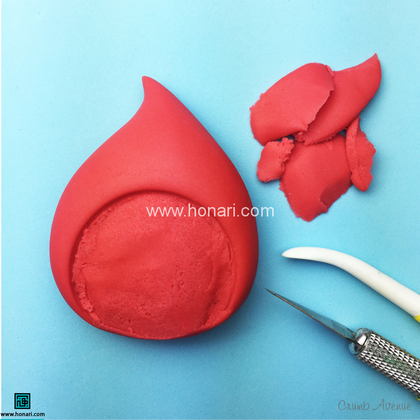 مقداری از خمیر قرمز جدا كنید(كمی بیشتر از خمیر سفید)و اون رو به شكل قطره در بیارید