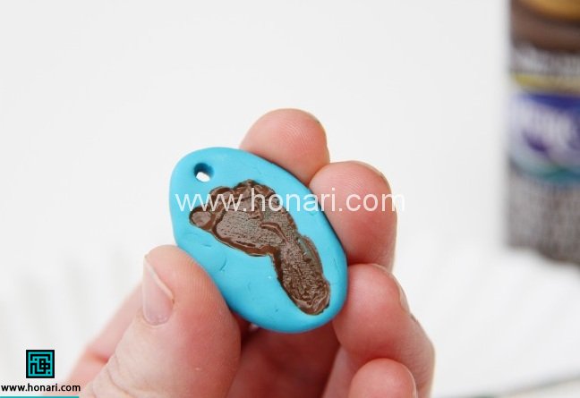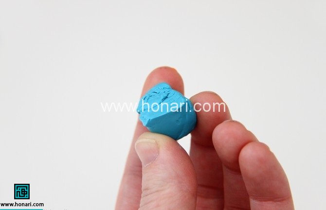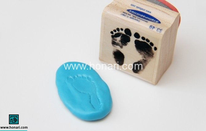 خمیر پلیمری خیلی نرم نیست. پس باید کمی مهر را فشار دهید. اما نه به این معنا که فشار وارد شده باعث شود تا طرح به صورت عمیق بر روی خمیر ایجاد شود.