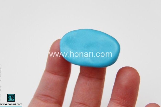 این مرحله باید خمیر رنگ شود. از رنگ های آکریلیک می توانید استفاده کنید.