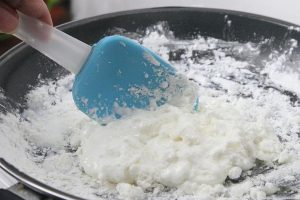 در ابتدای کار باید از ماهیتابه یا یک ظرف تمیز و بدون چربی استفاده کنید. بهتر است ماهیتابه مخصوصی را برای این کار در نظر بگیرید. چرا که چربی و … در کیفیت نهایی کار تاثیر دارد.