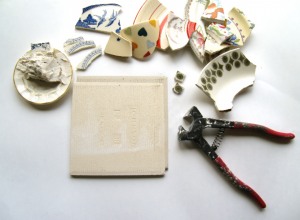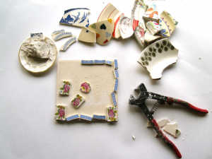ابتدا ظرف چینی یا كاشی ها رو با انبرکاشی به قطعات ریز برش بزنید.