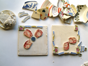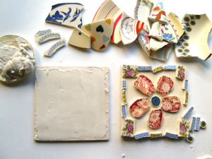 کاشی در رنگ های مورد نیاز (یا ظروف چینی شكسته)